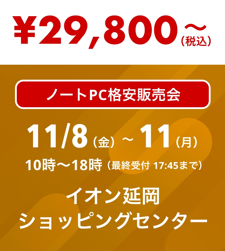 【会場:イオン延岡ショッピングセンター】ノートPC格安販売会